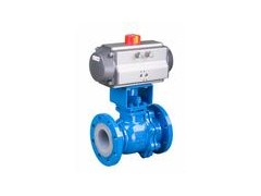 气动衬氟球阀是由双(单)作用气动活塞式执行器和浮动球阀组成。它是以压缩空气为动力,阀杆带动阀芯在阀体内转动90°。该产品按其密封性能可分软密封及金属密封。具有结构紧凑、体积小、行可靠、密封性好、维修容易等特点。广泛的应用于石油、化工、轻工、制药、造纸等工业自动控制系统中。