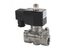上海不锈钢电磁阀|进口电磁阀,不锈钢电磁阀—上海日旋阀门不锈钢电磁阀系列:德国进口电磁阀,不锈钢蒸汽电磁阀,ZCG高温中压不锈钢电磁阀,ZCS不锈钢电磁阀,高温不锈钢电磁阀,ZCZG,ZCZ高压不锈钢电磁阀,DMF-Z直角式电脉冲不锈钢电磁阀,SLPM磁保持脉冲不锈钢电磁阀,SLDF系列下水专用不锈钢电磁阀,ZCZ(ZCZP)系列蒸汽不锈钢电磁阀,ZS不锈钢二位二通零压差电磁阀,不锈钢二位二通零压差电磁阀,不锈钢两口两位直动式电磁阀,SLP不锈钢二位二通先导式电磁阀.阀门材质有: 不锈钢304、316、304L、316L等。连接方式:法兰、丝口或焊接。驱动方式:手动、电动、气动、伞齿轮、正齿轮转动。适用介质:水、油品、气、蒸汽等。欢迎选购订做!不锈钢电磁阀价格|不锈钢电磁阀尺寸|不锈钢电磁阀原理|不锈钢电磁阀作用 不锈钢电磁阀的发展史,到目前为止,国内外的不锈钢电磁阀从原理上分为三大类(即:直动式、分步直动式、先导式),而从阀瓣结构和材料上的不同与原理上的区别又分为六个分支小类(直动膜片结构、分步膜片结构、先导式膜片结构、直动活塞结构、分步活塞结构、先导活塞结构) 。(一)、直动式不锈钢电磁阀原理:通电时,电磁线圈产生电磁力把关闭件从阀座上提起,阀门打开;断电时,电磁力消失,弹簧力把关闭件压在阀座上,阀门关闭。特点:在真空、负压、零压时能正常工作,但一般通径不超过 25mm。 (二)、分步直动式不锈钢电磁阀原理:它是一种直动和先导式相结合的原理,当入口与出口压差≤0.05Mpa,通电时,电磁力直接把先导小阀和主阀关闭件依次向上提起,阀门打开。当入口与出口压差>0.05Mpa,通电时,电磁力先打开先导小阀,主阀下腔压力上升,上腔压力下降,从而利用压差把主阀向上推开;断电时,先导阀和主阀利用弹簧力或介质压力推动关闭件,向下移动,使阀门关闭。(三)、先导式不锈钢电磁阀原理:通电时,电磁力把先导孔打开,上腔室压力迅速下降,在关闭件周围形成上低下高的压差,推动关闭件向上移动,阀门打开;断电时,弹簧力把先导孔关闭,入口压力通过旁通孔迅速进入上腔室在关阀件周围形成下低上高的压差,推动关闭件向下移动,关闭阀门。订货流程