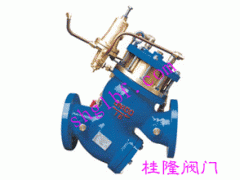 本阀利用水箱(水塔)设定的高低水位的静压水头之差,通过水位高度导阀来控制主阀敏感元件活塞的上下运动以达到主阀的启阀。当水箱的水位升到设定的高水位时,主阀关闭,停止向水箱供水;当水箱下降到低水位时,主阀打开,向水箱供水。通过调节高度水位导阀的调节螺杆,可以设定高低水位。