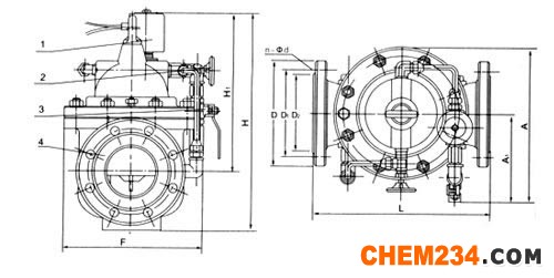 ■600X水力电动控制阀主要外型及连接尺寸: