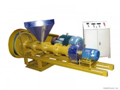 单螺杆挤压式膨化机利用螺杆与机膛间的摩擦使物料充分混合、挤压、加热、胶合、糊化而产生组织变化,物料被挤压到出口时压力由高压瞬间变为常压,由高温瞬间变为常温,造成水分迅速地从组织结构中蒸发出来,使其内部形成无数的微孔结构,再通过切割装置,切割冷却即膨化成型。