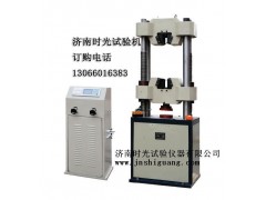 详细信息 WE-300B12年最新研制30吨数显型液压万能试验机可做压力/弯曲/拉力/剪切四种试验 时光试验机械设备生产厂家 周甜甜 18854174536 【30吨万能试验机用法】 WE-300B液晶数显式万能试验机用于各种金属材料的拉伸、压缩、弯曲及剪切试验,亦可用作塑料、混凝土、水泥等非金属材料的压缩试验,增加简单附件,可完成胶带链条,钢丝绳、电焊条、瓦及构件的多种性能试验。本机采用油缸下置式、高度低、重量轻,尤其适用于工程施工部门。 电子测力,液晶显示试验力-时间曲线、试验力、试验力峰值、具有明显屈服特征材料的屈服力,实验数据方便直观;通过数字健输入试样编号、横截面积,可直接测定材料的抗拉强度、屈服强度等力学性能;可以对实验结果进行打印。 【该万能试验机指标】 技术参数:WE-300B 最大试验力 300kN 量程 全程不分档,等效3挡 测力范围 4%-100%F.S 试验力示值相对误差 ≤±1% 分辨率 0.1kN 拉伸空间 550mm 压缩空间 380mm 夹持方式 手动加紧 圆试样夹持直径 φ6-26mm 扁试样夹持厚度 0-15mm 扁试样最大夹持宽度 70mm 剪切试样直径 10mm(另选) 上下压板尺寸 φ160mm(另选204×204mm) 弯曲支点间最大距离 450mm 拉伸空间两支柱距离 450mm 油泵电动机功率 1.1kW 横梁上下移动电动机功率 0.75kW 主机外形尺寸㎜ 720×580×1950 净重 1900Kg 【生产厂家】济南时光试验仪器有限公司 【联系人】周甜甜 【电话】13066016383 【传真】0531-87151812 QQ1263628783 【售后保障】 1.供方为需方免费调试、并为其培训操作人员. 2.设备质量保证期壹年,壹年内出现质量问题供方免费维修. |