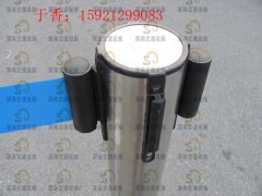 不锈钢一米线系列产品组成:立柱、底盘、底座、伸缩带不锈钢一米线高90cm,管子直径6.3 cm,底座直径30cm。不锈钢一米线带子颜色有红、黄、白、移动蓝、工行灰、邮政绿色、电网绿等,并可根据客户需要加丝印字体或者LOGO材质:不锈钢材质,可喷塑黑色或蓝色等。
