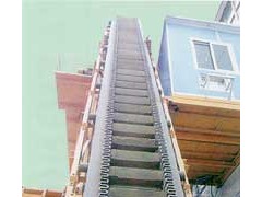 大倾角挡边输送带(www.hdint.cn)又叫裙边隔板输送带, 是由基带、挡边、横隔板3部分组成。挡边起防止物料测滑撒落的作用。为便于绕过滚筒,档边设计成波纹状;横隔板的作用是承托物料,为了实现大倾角输送,采用T型TC型。档边和横隔板是用二次硫化的方法与基带连接的,具有很高的连接强度。用于输送易散落的粉状、粒状、小块状、糊状及液态状物料。其特点:适用于倾角0°~90°散装物料的输送;具有使用范围广、占地面积小、无转运点、减少土建投资、维护费用低、维修容易 输送量大 连续化、高效率、大倾角运输,操作安全,使用简便,,运费低廉,并能缩短运输距离,降低工程造价,节省人力物力等特点