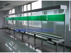 采用钢制支架和专用铝合金轨道为主件。流水线可分为手推式和自动式,该类流水线是广泛运用电子行业,采用链条拖动工装小车,成水平环运行,进行工件装配。