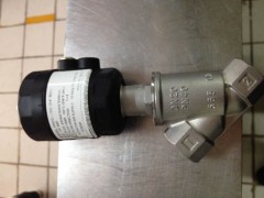 二通气动活塞开关式角阀,本体为不锈钢材质,可用于蒸汽、水、空气、油和气体。