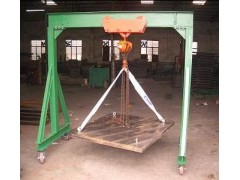备及材料运输的需要,开发出来的新型小型起重龙门架。适用于制造模具、汽修工厂、矿山、工地及需要起重