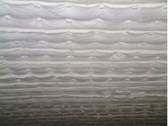 根据我公司纤维制品的实际应用经验,“兵列式”排列方式,纤维棉块的膨胀几种朝向一个方向,模块的不膨胀面,采用一层纤维毯,对折后根据图纸要求压缩挤压,不膨胀面集体处理,不会出现“花心”孔。
