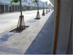 欧进艺术压花地坪是针对原始道板砖易松动,整体性差,空隙易长杂草等缺点而研制的一种工业、建筑装饰材料。新型艺术压花景观材料具有花型多样,色彩鲜艳,整体性强等显著优点。彩色艺术地坪也叫压模地坪、压花地坪,是采用特殊耐磨矿物骨料,高标号水泥、无机颜料及聚合物添加剂合成的彩色地坪硬化剂,通过压模、整理、密封处理等施工工艺使混凝土表面产生不同凡响的石质纹理和丰富的色彩效果。
