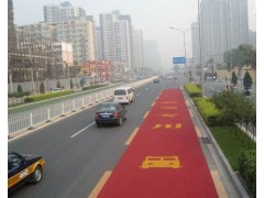 公交专用车道 彩色路面增加地面与轮胎之间摩擦的同时降低了车道对汽车轮胎的损伤,不滑不震,融雪美观、减少了车辆轮胎与车道间磨擦的澡音,降低了普通车道对汽车和汽车轮胎的损伤,阻尼性能超强,起伏性低。采用水尼基材料所以该车道具有超长寿命;表面用自热树脂封闭,耐候性特强、具有自洁性;抗重压、耐磨损、易施工,工期短 。