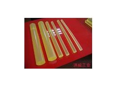 PU(聚氨酯)英文名称:Polyurethane,简称PU。中文名称聚氨酯,俗称优力胶、弹簧胶、全称为:聚氨基甲酸脂或异氰酸脂聚合物。聚氨脂是一种介于塑料和橡胶之间的弹性体,其优异独特的综合性能是普通的塑料和橡胶所不具备的。 特性:聚氨脂弹性体具有耐磨耗、耐化学腐蚀、抗张强度、高弹性、耐高压荷重、耐磨耗强度高、吸震性强、耐撕裂,耐辐射,高强度,高承载和减震缓冲等良好性能。同时具有较宽的硬度范围,从邵氏A10—100。目前已有超过邵氏A100及以上的产品。具有优越的用于吸震,减震缓冲垫板,比金属弹簧耐冲击,不伤模具。应用:适用于冶金、矿山、石油、汽车、建材、体育,重型机械、大型冲压设备的减震垫板、垫块、弹簧,以及做各种金属板、管的冲材模。通用机械设备的摩擦,起缓冲或减震作用,是理想的模具弹簧。