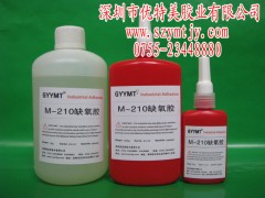 缺氧胶又叫厌氧胶或螺丝固定剂,属于单一型高分子聚合物产品,其主要是在缺氧环境下固化,与氧气接触时不会固化,在密闭缺氧环境下快速固化可形成极高强度.主要应用于工业生产中的螺丝固定,封闭机件组合, 管路密封, 轴承固定等, 可延长机械寿命,增加操作安全,提高产品品质等,其耐老化性能极强,可耐温-55℃----160℃, 是一种性能优越的工业胶粘剂.