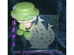 本公司主打产品:玻璃蒙砂膏(一分钟成品、无需保护膜)丝网印刷玻璃蒙砂油墨(乳化膏、玉砂膏)适用于高档精美玻璃工艺品表面图案的加工,结合丝网版印制各种图案、logo、商标、文字等;适合用于各类水晶玻璃、艺术灯具、灯片、茶几、国际象棋盘、杯垫、彩绘玻璃、门窗玻璃、各类镜子、大面积装饰玻璃等工艺玻璃加工。产品特点:质量稳定、操作简单、效果高档、成本低廉。本公司免费提供相关加工技术指导、相关技术人员培训,还可提供上门技术服务、设备制作等服务。欢迎广大有意开发新项目的人士来电咨询了解哦!