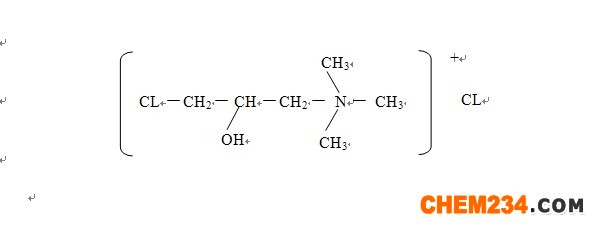 液体阳离子醚化剂是一种多应用领域的精细化工产品。其主要成分是三甲基(3-氯-2-羟丙基)氯化铵,分子式C6H15Cl2NO,分子量188.10。结构式如下: