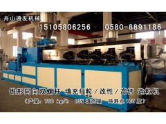 TF-500型号“新型密炼式 填充母粒/ 改性母粒 /色母双螺杆造粒机”(螺杆直径65/130mm;长径比48:1;螺杆有效长度3150mm;主电机功率75KW;产量700kg/h;吨耗电150度)