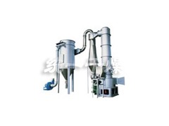 闪蒸干燥机由加热系统、粉碎系统、加料系统、主机干燥分级系统、气-固分离系统、控制系统和风机等组成。工作时,湿物料由螺旋加料器送入干燥室,物料在干燥室中与高速旋转的热风相遇,细粉状物料被热风带着向干燥室上端移动,不能带走的物料落在干燥室底部,被底部的粉碎装置打碎,物料被迅速分散,物料与热风的接触面积迅速增大。在离心力的作用下(顶部有分级装置),达到干燥程度和一定细度的产品被吹出分级装置,物料在此过程中得到快速干燥。