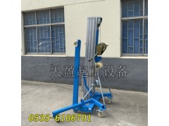 1、手摇式铝合金升降机铝合金材质,结构坚固,体积小自重轻,作业省力