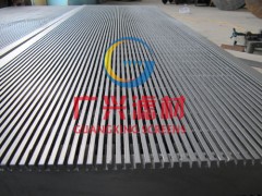 衡水广兴滤材生产的楔形丝筛板(细格栅)具有焊接强度高,缝隙均匀,精度高,耐腐蚀,使用寿命长,筛板表面光滑平整,易反冲洗,广泛应用于细物料筛分、脱水、脱介的过程,是振动筛、分级筛、弧形筛、重力筛、矿石筛、酿酒设备、环形油脂浸出器及污水处理设备中常用的过滤设备。我公司产品具有高强度的抗磨性、高强度及抗腐蚀性,使用寿命比一般的过滤产品提高了30%,是目前市场上最理想的过滤替代产品。楔形丝筛板的过滤精度0.05mm-5mm,常用材质为不锈钢304,316L,可根据客户要求选用其他材质和设计、生产不同形状和弧度的筛板。
