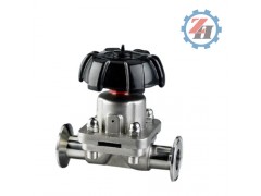 卫生级隔膜阀开启和关闭是由阀杆的上下运动来实现。当阀杆处于上位时,球形膜片向上弯曲阀门形成导通状态。当阀杆由上往下运动时带动阀芯使膜片弯曲,被迫膜片紧帖阀座区或,关闭了管道流体通向路径。