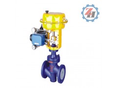 1.气动衬氟单座调节阀是自动化控制系统中仪表的执行单元,采用电-气阀门定位器,以电信号和压缩空气为动力,接受控制系统输入的0-10mA •DC或4-20mA •DC电流信号,由调节器将压缩空气,转换成气源压力信号输入,以直行程输出的推力改变阀门开度位移,达到对流体介质的工艺参数精确调节控制