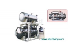 适用范围 杀菌釜是一种间歇工热水杀菌设备,它用高温压的热水作加热介质,对已包装的食品进行灭菌。在灭菌的过程中,为使食品迅速均匀受热,可采限热水强制循环、食品包装物回转或热水喷淋等措施,从而对食品进行高温短时间灭菌这样可使食品保持最佳的品质、风味和色泽,最大限度的保持食品的营养成份。热水灭菌设备可用于各种玻璃瓶装、塑料瓶装、塑料瓶装、蒸煮袋装、易拉罐装食品的灭菌,如:乳制品、饮料、罐头、八宝粥、火腿肠、肉酱等。