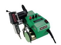 塑料防水板焊接机UNIFLOOR E,电位器旋钮调温,液晶数码显示温度、焊接速度、风机转速,电子温控高精度长寿命,20~650℃连续可调、偏差±1℃。具有体积小、重量轻、操作方便的特点,热风速度、焊接速度可调,导向机构设置充分保证不偏离焊接行进方向,焊缝均匀牢固,施工效率高、速度快、质量好,尤其适合于厂房防静电地板、大厅、医院、公共场所、地铁、客车等塑胶地板焊接施工。