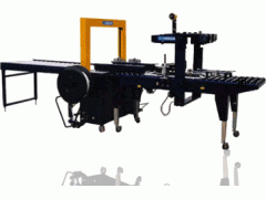 该打包机自动封箱,自动捆扎,光电感应,精确无误,自动输送,自动转向,可调节打包距离,广泛应用于工厂企业,是纸箱包装的最佳解决方案。