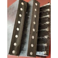 采用特殊加强耐撕裂聚酯帆布,或用钢丝防撕裂层.使用性能好,运行可靠,维修少等优点.钢丝绳输送带的特征主要包括:按结构分:普通型和抗冲击、抗撕裂型。 按用途分:除普通型外,还有耐磨、耐热、耐寒、耐酸碱、阻燃、防撕裂、难燃、耐臭氧等类型。 品种:按覆盖胶性能可分为:普通型钢丝绳芯输送带,阻燃型钢丝绳芯输送带 ,耐热型钢丝绳芯输送带,耐磨型钢丝绳芯输送带,耐寒型钢丝绳芯输送带,耐酸碱型钢丝绳芯输送带,耐油型钢丝绳芯输送带,阻燃型钢丝绳芯输送带等品种。 特点:拉伸强度大,抗冲击好,寿命长,使用伸长小,成槽性好,耐曲挠性好适于长距离,大运程,高速度输送 物料。该产品是由芯胶,钢丝绳,覆盖层和边胶构成。 用途:广泛用于煤炭,矿山,港口冶金,电力,化工等领域输送物料。