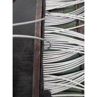 采用特殊加强耐撕裂聚酯帆布,或用钢丝防撕裂层.使用性能好,运行可靠,维修少等优点.钢丝绳输送带的特征主要包括:按结构分:普通型和抗冲击、抗撕裂型。 按用途分:除普通型外,还有耐磨、耐热、耐寒、耐酸碱、阻燃、防撕裂、难燃、耐臭氧等类型。 品种:按覆盖胶性能可分为:普通型钢丝绳芯输送带,阻燃型钢丝绳芯输送带 ,耐热型钢丝绳芯输送带,耐磨型钢丝绳芯输送带,耐寒型钢丝绳芯输送带,耐酸碱型钢丝绳芯输送带,耐油型钢丝绳芯输送带,阻燃型钢丝绳芯输送带等品种。 特点:拉伸强度大,抗冲击好,寿命长,使用伸长小,成槽性好,耐曲挠性好适于长距离,大运程,高速度输送 物料。该产品是由芯胶,钢丝绳,覆盖层和边胶构成。 用途:广泛用于煤炭,矿山,港口冶金,电力,化工等领域输送物料。