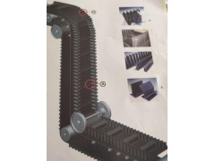 耐热挡边输送带是由基带、挡边、横隔板3部分组成的。挡边主要起防止物料侧滑撒落的作用。同时为了便于绕过滚筒,设计者特意将档边设计成波纹状。横隔板的作用是承托物料,考虑到大倾角输送的功能,设计者还特意采用T型TC型的横隔板。而且档边和横隔板是用二次硫化的方法与基带连接的,因此具有很高的连接强度。