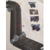 定做波状挡边耐酸碱输送带是由基带、挡边、横隔板3部分组成的。挡边主要起防止物料侧滑撒落的作用。同时为了便于绕过滚筒,设计者特意将档边设计成波纹状。横隔板的作用是承托物料,考虑到大倾角输送的功能,设计者还特意采用T型TC型的横隔板。而且档边和横隔板是用二次硫化的方法与基带连接的,因此具有很高的连接强度。