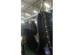 定做大倾角输送机皮带是由基带、挡边、横隔板3部分组成的。挡边主要起防止物料侧滑撒落的作用。同时为了便于绕过滚筒,设计者特意将档边设计成波纹状。横隔板的作用是承托物料,考虑到大倾角输送的功能,设计者还特意采用T型TC型的横隔板。而且档边和横隔板是用二次硫化的方法与基带连接的,因此具有很高的连接强度。
