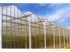 该温室采用热镀锌钢架结构,铝合金型材连接,覆盖材料为4mm,国产浮法玻璃,通光率达到90%。