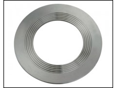 齿形垫片是一种金属软垫片,密封效果优于金属平垫,一般用精密的车床在金属不锈钢平垫片的二面加工成同心的90度夹角波形的锯齿状沟槽,根据不同的介质,可选择柔性石墨、PTFE、无石棉板或其他一些软金属,粘贴在垫片的二面,利用软性覆盖层的密封性以及金属的强度、弹性好的优点,还兼有迷宫密封作用,故达到同样的密封效果,垫片压紧力较小。齿形组合垫片也可不带覆盖密封层直接使用,可能达到良好的密封效果,但在高压场合中容易对法兰的表面造成损失。齿形组合垫片主要应用于中、高压力和高温的压力容器和管道法兰的密封。
