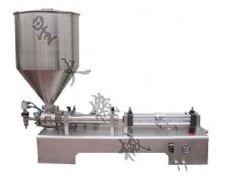 该机为半自动活塞式膏体灌装机,通过气缸带动一个活塞来抽取和打出物料,用单向阀控制物料流向,用磁簧开关控制气缸的行程,可调节灌装量。