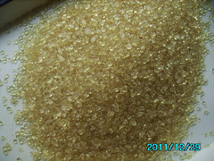 外观:为乳白色,黄色至深褐色片状或粒状固体,透明而有光泽
