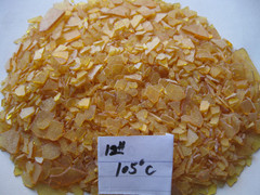 外观:为乳白色,黄色至深褐色片状或粒状固体,透明而有光泽