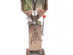 原理及特点: 该灌装机容量为50g,使用时旋转容量调节钮,观看刻度表。指针对准你所需灌装的容量,然后扳动手柄试灌装。