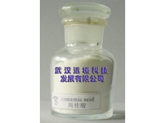 是重要的有机合成工业中间体之一,广泛用于医药、香料、塑料和感光树脂等化工产品中。 肉桂酸还可作为镀锌板的绥蚀剂,聚氯乙烯的热稳定剂,多胺基甲酸脂的交联剂和乙内酰的阻燃剂,以及化学分析试剂等。具有很好的保香作用,通常作为配香原料,也被用作香料中的定香剂,在食品、化妆品 、食用香精等领域都有广泛的应用。