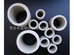 陶瓷拉西环是塔填料历史上最早的、具有固定几何形状的环形填料,陶瓷拉西环填料于1914年由拉西(F. Rashching)发明,为外径与高度相等的圆环。拉西环填料的气液分布较差,传质效率低,阻力大,通量小,目前工业上已较少应用。它的形状简单,其高度与直径尺寸相等。大尺寸的拉西环(100mm以上)一般采用整砌方式规则填充,76mm尺寸以下的拉西环一般采用乱堆方式装填。
