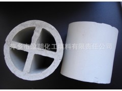 它是对拉西环的改进,在类似的环内添加隔板方式,扩大了比表面积,同时增加瓷质填料的抗压强度,压降相对较低,沟流和壁流较少。这种填料由于尺寸较大,仅适用于整齐堆砌,目前一般只作为散堆填料的塔底支撑分布层用. ø80-150mm规格的十字隔板环可作支承材料,空隙率大于60%,个数为整聚数。