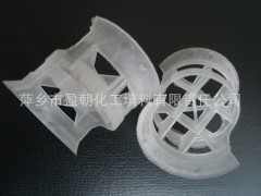 该填料吸收了鞍型填料和环型填料的优点,且结构更加紧凑对称。 相当于将阶梯环沿轴向对半剖开,然后将其中的一半倒转108°连接而成,其中每个半圆形构件中间又有一个半环形肋片,增大了传质表面积,改善传质性能,防止填料散装时填料体之间发生叠合。特点是由于内肋呈共轭状,对称性较高,在塔内堆放时很均匀,不会发生沿轴向的重叠的现象。故使液体在填料表面能达均匀分布;相邻填料的内肋与表面接触点多,强化肋液体的汇聚和分散,促进了气液接触的表面更新。塑料共轭环耐腐蚀性能好、空隙大、阻力小、能耗低、且重量轻、可重复使用、操作费用低。特别适用于低温吸收、水洗、除尘等装置。