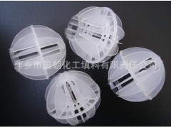 塑料多面空心球 (Plastic Polyhedron empty ball)由两个半球合成一个球形,每个半球由若干个半扇形叶片组成,上下叶片相互错开排列。比其他球形填料的比表面积大。用于污水处理,发电厂脱CO2、脱硫及净水塔内填料。