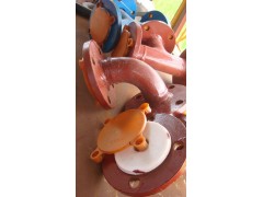 2.模压法衬里,整体一次成型,可根据需要加钢骨架,耐温可达250℃,耐负压较好。 适宜加工较复杂工件,如,三通、四通、弯头及其它非标件。但加工较为复杂,而且密度低,制品壁厚。