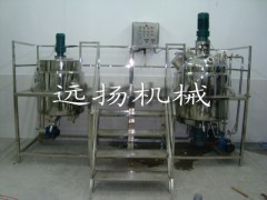 配有空气压缩机、真空机、高压出料、真空消泡。预配水箱、油箱,具有真空均质乳化功能,从投料到成品一道工序完成,可生产所有的液体洗涤剂、护发素、牙膏、化妆品等。