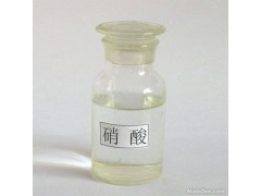 物化性质: 纯硝酸是无色透明的发烟液体,一般商品带有微黄色,有刺激性。相对密度1.5027(25℃)。沸点83℃(无水)。68.4%硝酸为恒沸混合物,具有最高沸点121.9℃。熔点-42℃(70.5%NHO3)。在-41℃(冰点)时,呈白色雪状晶体。不稳定,在常温下能分解出红棕色的***,光和热能促其分解更快。溶于水,可以任何比例混合,溶解时放热。硝酸能导电。是一价强酸,具有酸类的通性。浓硝酸是强氧化剂,能使铝钝化,除金、铂、铑、钽、铱外几乎可将所有的金属氧化。和有机物、木屑等相混能引起燃烧,与酒精反应会引起爆炸。硝酸腐蚀性很强,能灼伤皮肤,也能损害粘膜和呼吸道。与蛋白质接触生成鲜明的黄蛋白酸黄色物质。