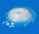 | 硅胶管:直径2-40MM范围内任意长度,耐寒冷、耐高温、无毒无味符合食品卫生,外加玻璃纤维之硅胶管,其防潮和耐压性能更强。主要规格为内径9.5和12.7,壁厚3.5,压力≤0.3MPa,用于蠕动泵口通过泵头滚碾泵管产生真空并驱动液体流动。 氟胶管: 10-200内径适用于耐腐蚀,耐高温,耐热油和恶劣条件下使用,工作压力(0.5-3.0MPa)可加接头和不锈钢网套保护层 |