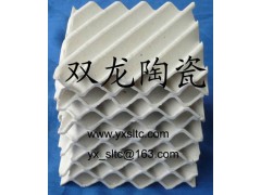 陶瓷波纹填料是一种新型规整填料,它是由许多具有相同几何形状的填料单元体组成。由于陶瓷独特的结构,具有良好的亲水性能,其表面可形成极薄的液膜的湍动及气流的倾斜曲折通道能促进气流但又不阻挡气流使陶瓷填料能与金属填料相匹敌,而其耐腐蚀、耐高温性能金属填料却无法相比。表面结构有良好的湿润性能,能使液体加快流动、使填料滞液量降至最低。从而降低了过热、聚合和结焦的机会