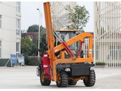 公路打桩机是一种新型,高效,自行式的先进公路设备及补桩设备。该机打桩深1600mm,每天大约打桩250-300个,行走速度3-5Km/h,该桩机可换机头,作为潜孔钻机使用。