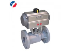 气动PVC法兰球阀阀体采用聚氯乙烯PVC聚丙烯或者PP、PPH材料,PVC可耐大部分的酸、碱、盐由低到高浓度的腐蚀,但不耐芳香烃、酮、醚、氯化碳烃类的腐蚀。PP、PPH耐化学性非常好,对一般的酸、有机溶剂的抵抗性好。常用作PVC法兰球阀的密封橡胶材料有三元乙丙橡胶EPDM和氟橡胶FPM等。根据其各自的特点而适用于不同的环境:EPDM可耐一般酸碱,耐化学药品性和耐水性好,但不耐矿物油和过热蒸汽(200℃),使用温度在-40~120℃。而FPM耐油、耐热、耐酸碱和耐化学药品性能佳。常用于耐高温、耐腐蚀的场合,使用温度在-20℃~210℃。